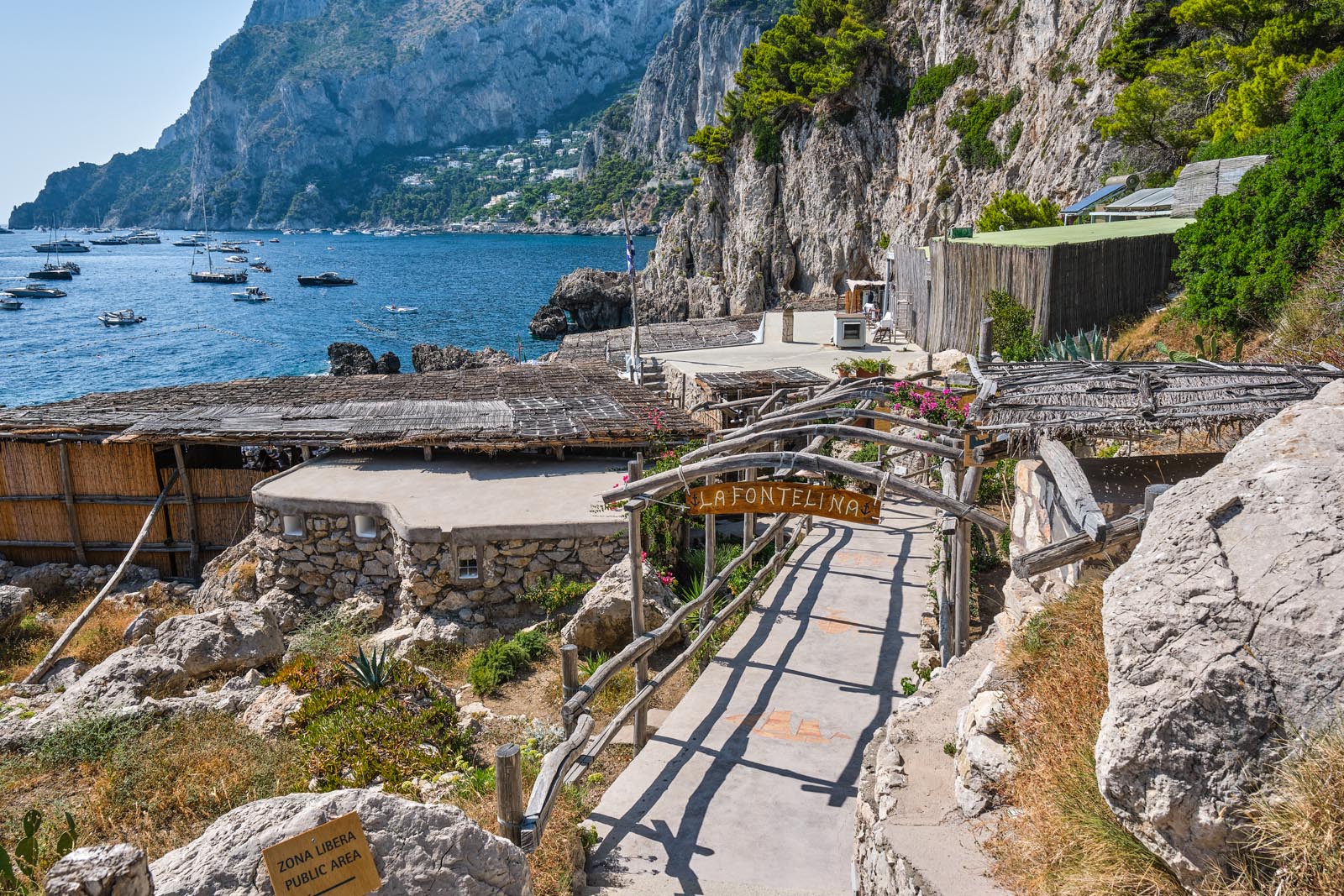 Ma non vi preoccupate della salita al rientro: dopo un pranzo o una giornata di mare, La Fontelina mette a disposizione un servizio navetta a bordo di un bellissimo gozzo tipico in legno che arriva sino a Marina Piccola (Scoglio delle Sirene), da cui si può prendere un comodo taxi per tornare in Piazzetta.