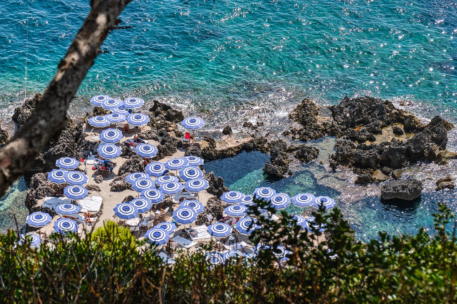 I suoi ombrelloni bianchi e blu, le rocce bianche calcaree ed il mare di un blu cobalto così profondo da togliere il fiato, accessibile solo attraverso scalette di ferro che invitano a tuffi senza tempo, è diventato, nell’immaginario collettivo, il sogno stesso di Capri e delle vacanze italiane più esclusive.